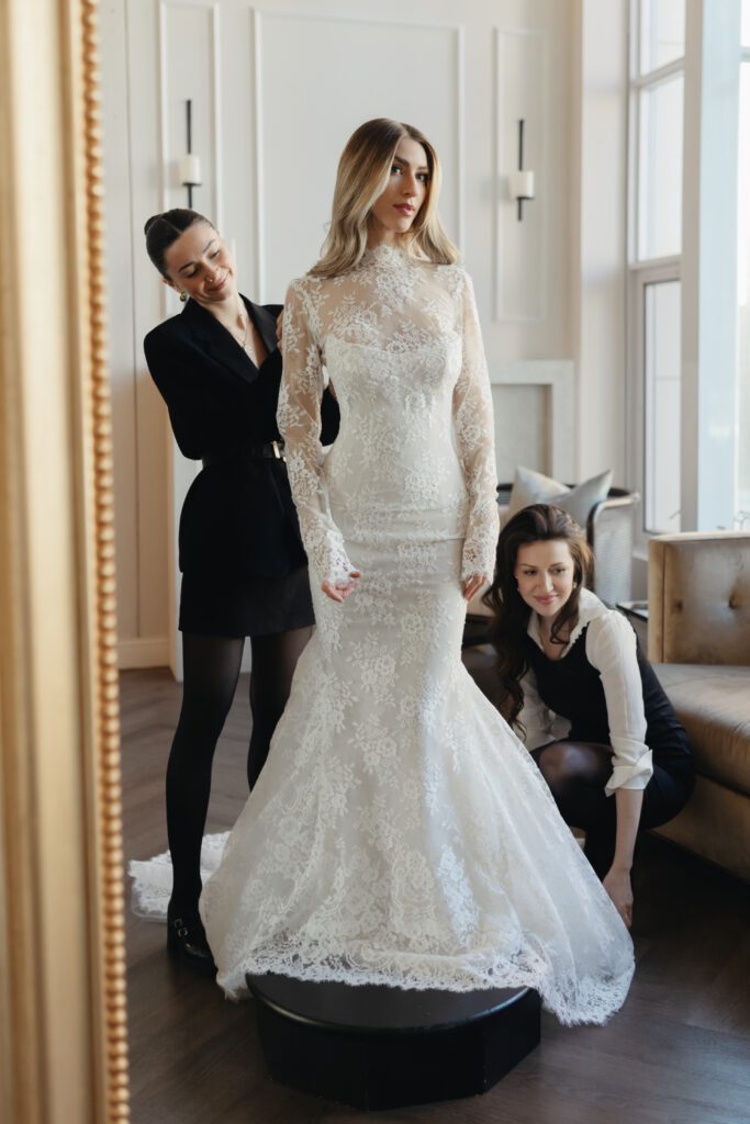 For brides wanting a truly unforgettable moment, a full boutique buyout allows two private hours with a senior stylist, bubbles flowing, and your six closest loved ones by your side.