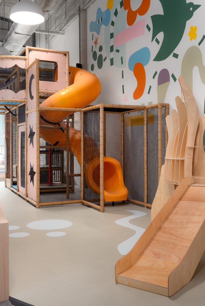Adventure Alley isn’t your typical chaotic, fluorescent-lit jungle gym. It’s a contemporary, Scandinavian-inspired, nature-forward dream space for families. Think clean lines, warm wood, eco-friendly finishes, a vibe where relaxing meets fun.