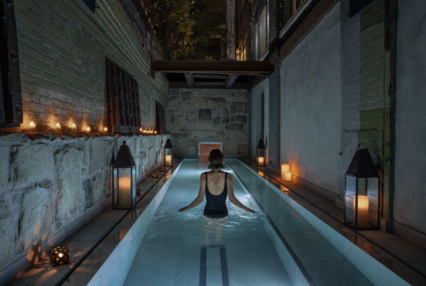 AIRE’s bath circuit draws inspiration from ancient Roman, Greek, and Ottoman traditions. Guests move between pools set at different temperatures, allowing the contrast therapy to promote relaxation, circulation, and stress relief.