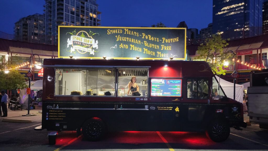 For couples who love bold flavours and comfort food, SmokeShow Food Truck has become a consistent favourite around the city. Known for smoked meats, po’ boys, and hearty sandwiches, SmokeShow Food Truck frequently pops up at breweries and community events across Calgary. You can usually catch them serving from late afternoon through the evening, making it an easy dinner option that pairs well with drinks and a laid-back vibe.