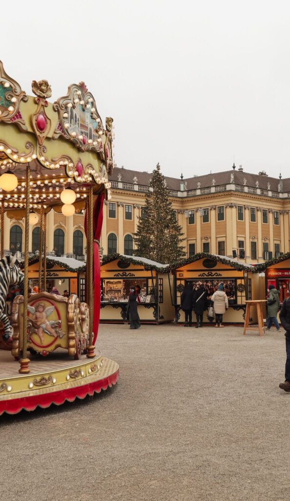 Then, get ready for max glamour in Vienna at the Schönbrunn Palace market, situated in front of the sprawling former residence of the Habsburgs. Here, every detail is elevated. Even your mug of Glühwein feels regal, often featuring glittering golden motifs or a portrait of Empress Sisi herself. It’s like stepping directly into the most stunning, royal holiday movie.