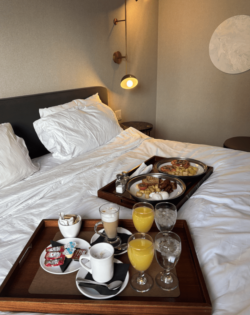 After dinner, it was straight back upstairs to get cozy for the night, followed by a slow, indulgent morning complete with an amazing room service breakfast spread, the kind that makes you linger in bed just a little longer.