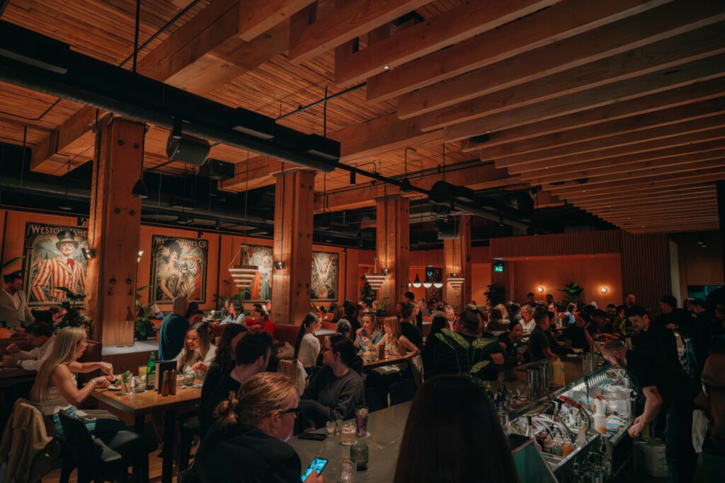 Inside, the design leans into the character that defines Yaletown while introducing a more refined, high-energy atmosphere. High ceilings, exposed brick, and wood beams nod to the neighbourhood’s industrial roots, while art deco influences and custom tapestries from local artists bring a bold, contemporary edge.