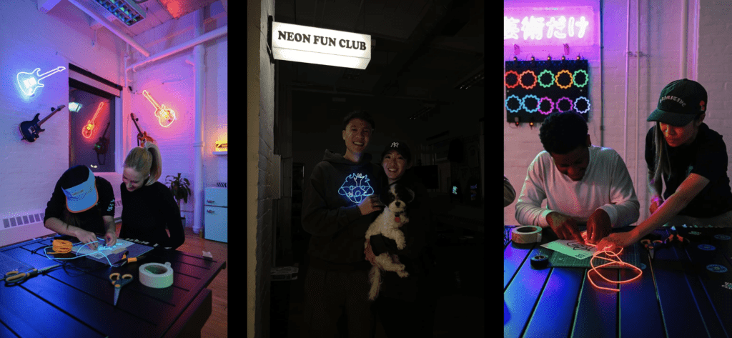They host private workshops for date nights working with Microneon to create a word sign, Chinese character sign, or dog face sign (perfect for pet parents)!