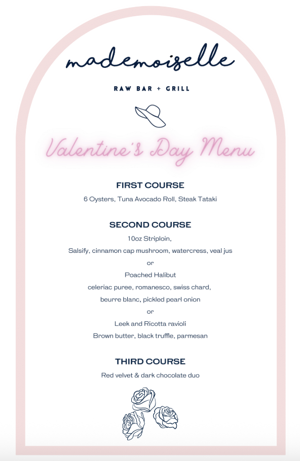 Reservations are required via OpenTable for Feb 14 only. Roses are available for pre-order to surprise that special someone at the table.